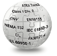 Оборудование Moxa удовлетворяет строгим индустриальным стандартам, что гарантирует его высокую степень устойчивости к экстремальным условиям эксплуатации, таким как повышенная влажность, пыль, коррозия, температурные перепады, вибрации, удары и EMI помехи. Специальный раздел мини-сайта "Сертификаты"