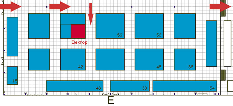 N2 стенд компании "Вектор" Киев отмечен красным цветом, а так же стрелками показан проход к стенду. |