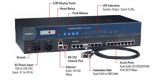 MOXA CN2600 обеспечивает поддержку 2 LAN