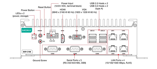 RS-232/422/485, до 10 портов Gigabit Ethernet, 4 цифровых входа