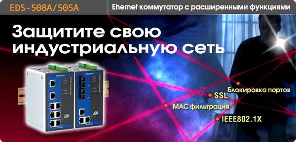 сетевая связь Прекрасные характеристики управления не единственная причина выбора серии EDS-508A/505A. Так как сетевая безопасность становится особенно важной для индустриальных сетей, то эти Ethernet коммутаторы не только обеспечат надежную передачу данных, но также защитят ваши данные, используя передовые механизмы их защиты. EDS-508A/505A поддерживают IEEE802.1X - порт базирующийся сетевой тип доступа, SSL, фильтрацию MAC адресов и функцию блокировки портов (port-lock) для обеспечения безопасности индустриальной сети. |