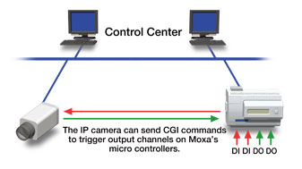 Интеллектуальные решения Moxa на базе SNMP управления благодаря интуитивно понятной логике управления, запатентованной Moxa - Click&Go, легко интегрируются с системами видеонаблюдения. Оборудование управления Moxa может посылать пользовательские CGI команды для взаимодействия с IP-камерами, что позволяет управлять ими - изменять позиционирование или фокусировку для немедленной проверки состояния объектов на удаленной стороне, без необходимости ручного управления из центра управления. |
