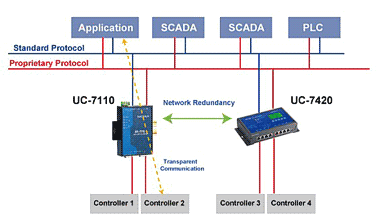 Преобразование протоколов и данных под управлением MOXA UC-7110 и UC-7420 Для промышленных приложений, как например, SCADA системы и системы проверки окружающей среды, преобразование протоколов - основная задача, которая влияет на всю систему управления в целом. Много усилий затрачивают системные интеграторы, чтобы переносить программное обеспечение на устройства, для которых основная задача - преобразование одного протокола в другой. ![]() Одна из Европейских компаний использует MOXA UC-7110 и UC-7420 - встраиваемые компьютеры для создания надежной системы, которая может решать задачи сложного преобразования протоколов и поддерживать резервируемую сетевую связь. UC-7110 и UC-7420 предоставляют системным интеграторам простой путь подключения различных контроллеров в одну прозрачную сетевую связь. Программисты при этом обнаружили, что переносить уже готовое программное обеспечение достаточно просто, тем самым они смогли работать с многими устройствами со стандартными протоколами, как например, Modbus/TCP, Modbus/RTU и IEC 60870-5-104. Они смогли даже улучшить управление потоком данных для увеличения устойчивости сетевой связи между устройствами и управляющим центром. Кроме того, этот тип системы может быть использован как структура, обеспечивающая резервирование, чтобы гарантировать непрерывность операций. Это позволило также уменьшить длины кабелей связи и упростило системную архитектуру для получения экономически выгодных решений, которое полностью соответствуют требованиям индустрии. |