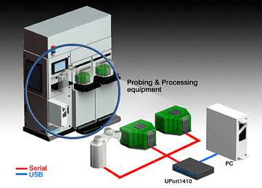 USB-в-serial конверторы использованы для автоматизированной обработки в полупроводниковой промышленности В автоматизированной системе производства полупроводников требовалось объединение различного типа оборудования для его проверки и управления. Оборудование производства полупроводников достаточно специфическое и управляется ![]() MOXA решение Простым решением, добавляющим COM порты стало применение USB адаптера - MOXA UPort 1410, который имеет четыре последовательных RS-232 порта через USB интерфейс. При этом интеграторам нет необходимости знать установки ввода-вывода или IRQ. По сравнению с многопортовыми последовательными платами, которые устанавливается непосредственно в компьютер, последовательные USB решения проще в установке и обеспечивают все необходимое для подключения оборудования для производства полупроводников. Преимущества |