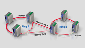 Новое поколение Turbo Ring Протокол Турбо кольца (Turbo Ring) был введен MOXA около четырех лет тому назад для обеспечения системных интеграторов экономически выгодным и простым в конфигурации средством, обеспечивающим надежную резервируемую кольцевую технологию. MOXA сообщает о выпуске нового протокола "Турбо кольцо нового поколения" (new generation Turbo Ring), который обеспечивает потребителей большей гибкостью при создании резервируемой сети. Рекордно короткое время восстановления Сегодня, высокая сетевая эффективность достигается за счет избыточности сетевых ресурсов, а время простоя сети стал ключевым показателем при развертывании многих промышленных сетей. Дело в том, что потери от простоя промышленной сети могут вызвать катастрофические результаты. Чтобы помочь конечным пользователям минимизировать простой из-за любых сетевых проблем, MOXA первой в мире приступила к производству устройств, которые имеют скорость восстановления около 20 мс - это гарантирует, что Ваша сетевая связь будет функционировать безостановочно. Если любой из путей в сети выйдет из строя, система возвращается к нормальному функционированию всего за 20 мс, даже при полной загрузке - до 250 коммутаторов. Различные топологии могут быть использованы при применении технологии Турбо кольца Moxa (Moxa Turbo Ring ) для уменьшения длин сетевых кабелей. Ваш выбор включает: кольцо без управляющих линий связи, двойное кольцо для одного коммутатора и двойне подключение (dual-homing). Испытайте самую быструю и наиболее надежную сетевую связь с резервируемыми коммутаторами MOXA с поддержкой Турбо кольца ! Типы топологий с использованием ТУРБО кольца MOXA