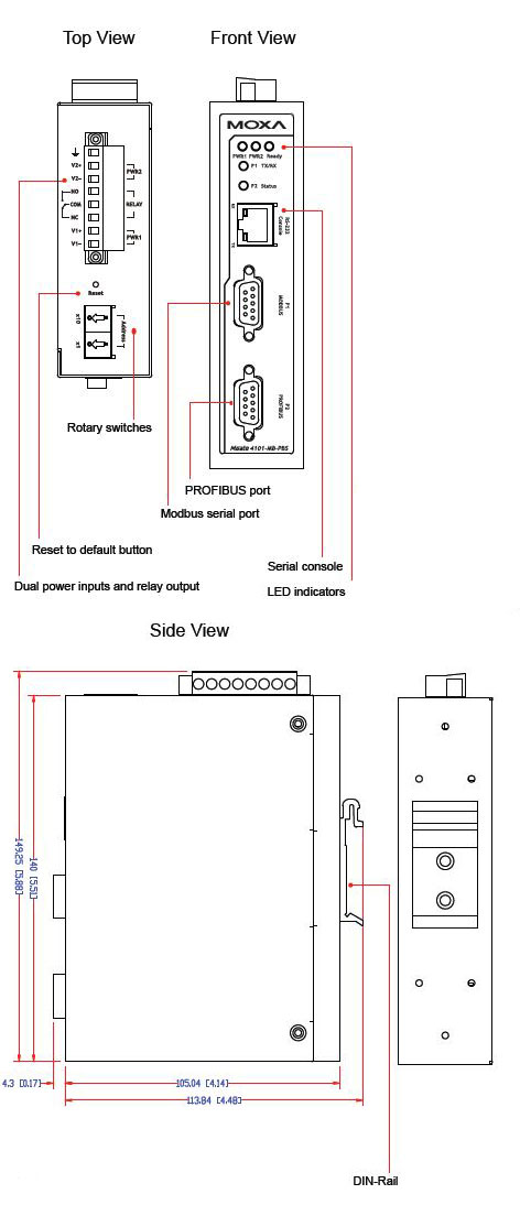 Серия MGate 4101-MB-PBS Однопортовые шлюзы Modbus RTU/ASCII в PROFIBUS slave