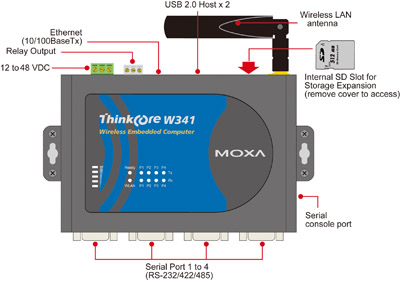RISC-базирующийся встраиваемый компьютер с WLAN, 4 Serial портами,