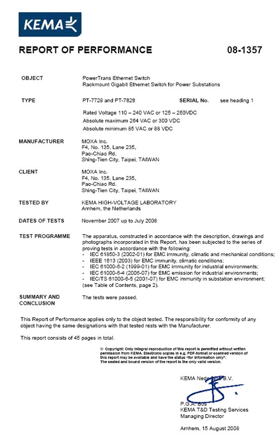 коммутаторы серии MOXA PowerTrans прошли