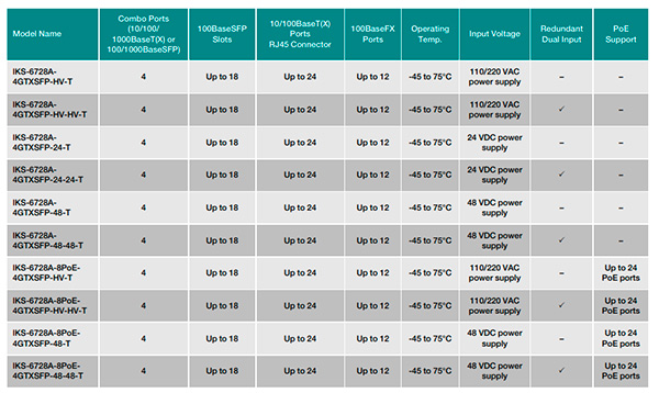 • Выходная мощность до 36 Вт на порт PoE+ (IKS-6728A-8PoE)