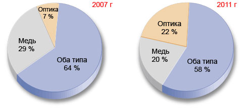 в настоящее времени для построения своих сетей применяют оптическую среду. Тем не менее, повсеместно нарастает применение оптических