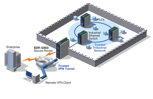 туннеля связи по WAN сетям, обеспечивая безопасный удаленный доступ к промышленной сети.