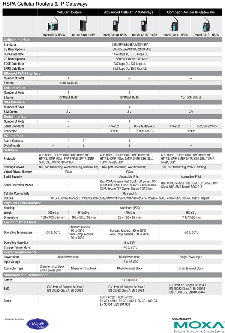 Серия МОХА HSPA оборудования обеспечивает достаточно высокую скорость передачи данных для потокового видео и поддержки приложений удаленного видеонаблюдения. В дополнение к технологии GuaranLink, которая обеспечивает надежную сотовую связь, оборудование МОХА HSPA также поддерживает VPN и программное обеспечения private IP для простого и безопасного мобильного управления.