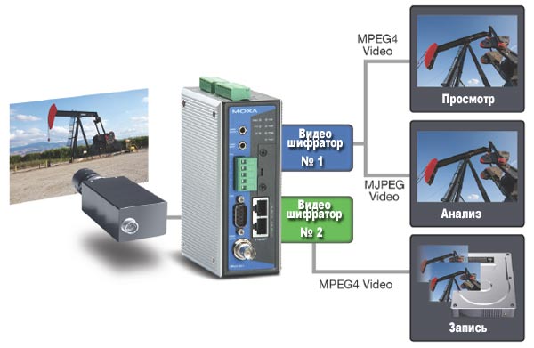 MJPEG/MPEG4 видеошифратор, 2 10/100BaseT(X) порта, рабочая температура от
