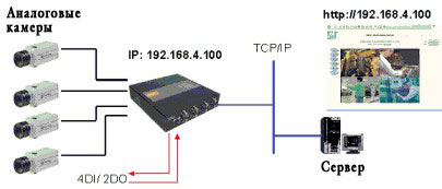 | 4-канальный видеосервер для удаленного наблюдения через TCP/IP сети |