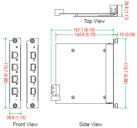 модуль с 4 10/100 / 1000Base-T (X) портами, рабочая температура от 0 до 60 ° C