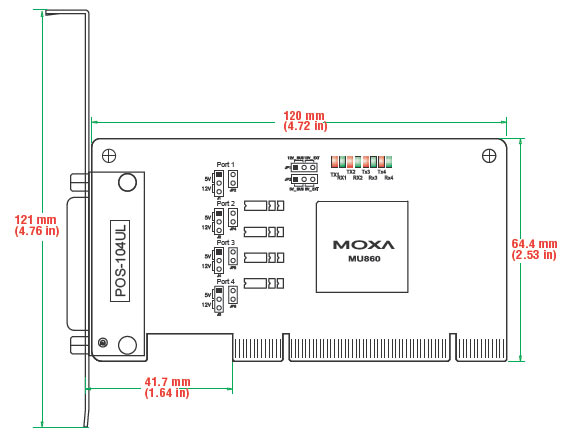 Платы MOXA POS-104UL содержат 4 независимых RS-232 последовательных порта для подключения оборудования к PC совместимым системы.