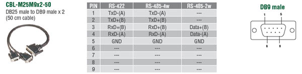TxD+(B), TxD-(A), RxD+(B), RxD-(A), RTS+(B), RTS-(A), CTS+(B), CTS-(A), GND