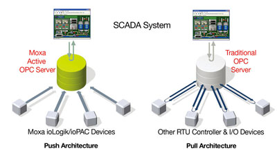 Запатентованная Moxa Active OPC Server технология представляет собой программный пакет, который выступает в качестве OPC драйвера для HMI и SCADA-систем. Активный OPC сервер MOXA ioLogik