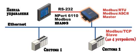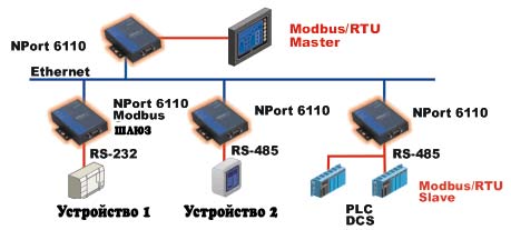 протокол Modbus/TCP. В этом случае, шлюз NPort 6110