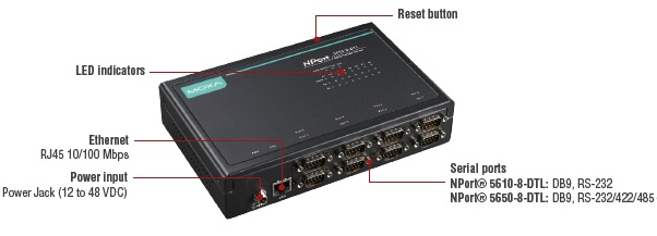 Сервера доступа для устройств с последовательным интерфейсом Serial - Ethernet: Серия NPort 5600-8-DT Lite 8-портовые настольные асинхронные сервера RS-232/422/485 в Ethernet