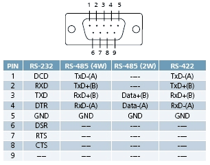 NPort IA-5150/5250 RS-232/422/485 коннектор (Male DB9)