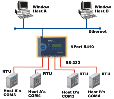 сконфигурированы как COM3 и COM4 хоста А (Host A),