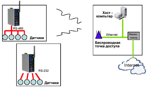 интерфейсом RS-232 и RS-485 через NPort W2000