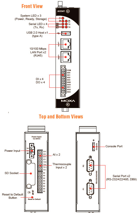 4 цифровыми входами и выходами, 2 аналоговыми входами и  2 входами для термопар,