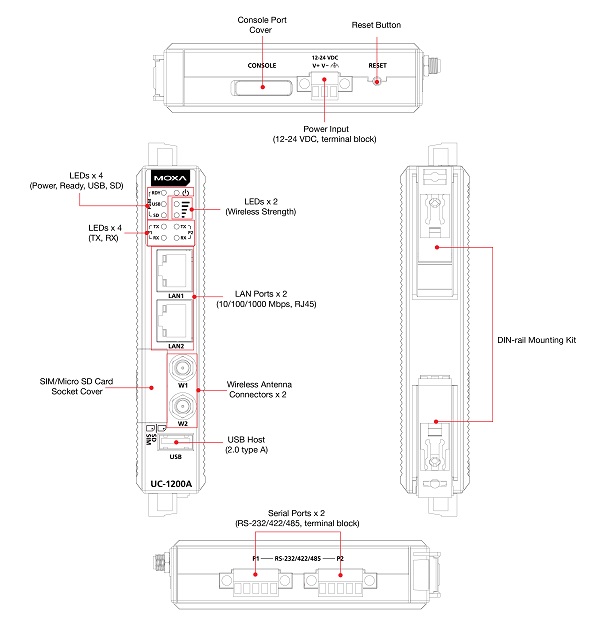 портами RS-232/422/485 и двумя портами Ethernet 10/100/1000 Мбит/с,