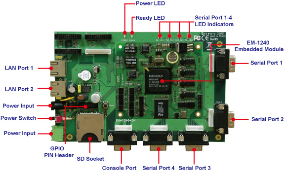 MOXA EM-1240 Вид сверху Вид снизу MOXA EM-1240 Отладочный комплект