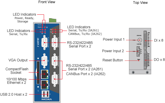 2 х LAN, VGA, CANbus, CompactFlash, USB