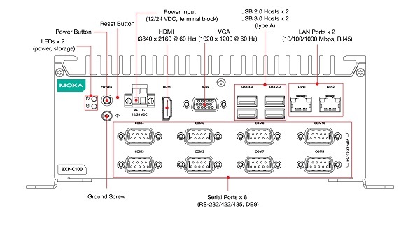 RS-232/422/485, до 10 портов Gigabit Ethernet, 4 цифровых входа