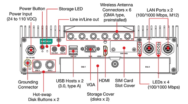 2 порта Gigabit Ethernet с X-кодированными разъемами M12 |