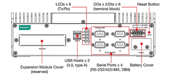 последовательных порта RS-232/422/485, 6 портов DI, 2 порта DO и