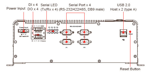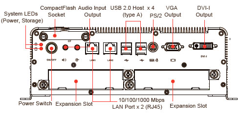 DVI-I, Audio, 4DI, 4DO, 6*USB 2.0,