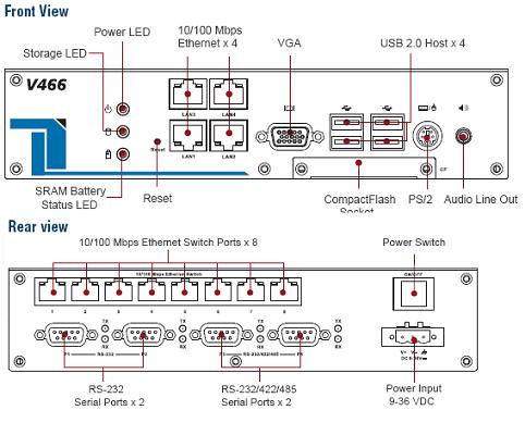 Серия V466 x86 встраиваемый компьютер с VGA, 4*LAN, 4 Serial порта, 8 Switch портов, CompactFlash, 4*USB