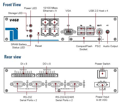 Серия V468 x86 встраиваемый компьютер с VGA, 4*LAN, 4 Serial порта, CompactFlash, 4*USB, 8+8 DI/DO