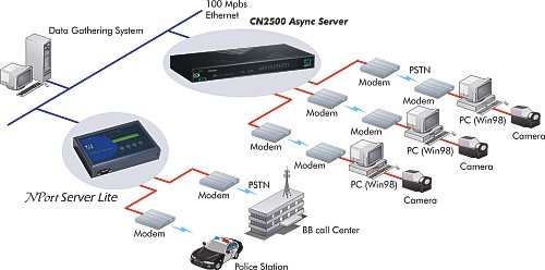 (PSTN). С помощью MOXA NPort Server Lite и CN2500 система безопасности получила способность обеспечивать информацией в реальном времени