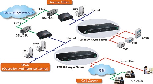 доступа из Call центра к основному центру обслуживания и простой доступ к централизованной сетевой базе данных. MOXA CN2500 Async Server доказал свою надежность и широко используется в телекоммуникационном бизнесе.