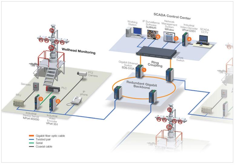 Надежная дистанционная сетевая проверка, основанная на открытом стандарте промышленного Ethernet, необходима для получения в реальном времени данных от различных устройств (RTU), тем самым устраняя необходимость присутствия персонала на платформах.