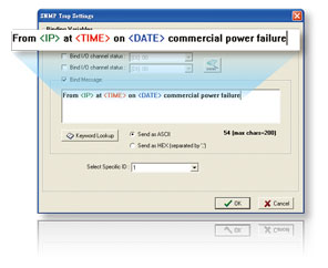 Когда происходит событие, устройство с поддержкой SNMP, формирует trap сообщение, чтобы уведомить администратора в центре управления о данном событии. SNMP оборудование Moxa обеспечивает не только формирование SNMP trap, который отражает статус ввода - вывода, дату, время и IP-адрес, но также может содержать и сообщения, предопределенные пользователями. По сравнению с использованием только идентификатора - trap ID, строка сообщений обеспечивает и немедленной - более содержательной информацией о текущей ситуации и, при этом, сетевым администраторам нет необходимости помнить или расшифровывать ID trap. Например, SNMP информация может содержать сообщение "Предупреждение о вторжении", а так же дату и время - таким образом администратор получит полную и исчерпывающую информацию о событии.