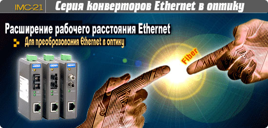 Серия медиа-конверторов IMC-21 Индустриальные конверторы 10/100BaseT(X) в 100BaseFX и 10BaseT в 10BaseFL Увеличьте сетевую производительность ! Серия индустриальных медиаконверторов MOXA IMC-21 состоит из нескольких конверторов начального уровня 10/100BaseT(X) в 100BaseFX и 10BaseT в 10BaseFL. Она специально разработана для надежного и стабильного функционирования в в жестких промышленных средах. IMC-21 - экономически выгодное решение, которое работает как с питанием от 12 до 45 В постоянного напряжения, так и от 18 до 30 В переменного напряжения. IMC-21 может надежно функционирует при температурах, колеблющихся от -10 до 60 °C, имеет прочный корпус удовлетворяет промышленным условиям эксплуатации.